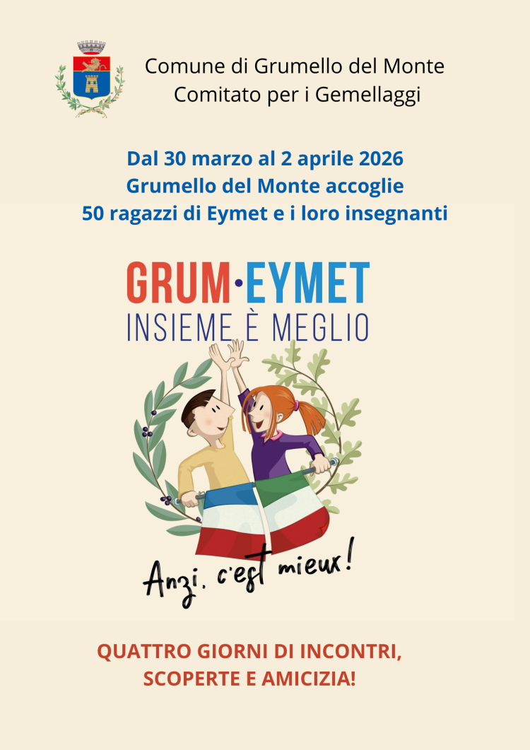 Dal 30 marzo al 2 aprile, la nostra comunità avrà il piacere di ospitare una delegazione di ragazzi provenienti da Eymet, il nostro comune gemellato in Francia.