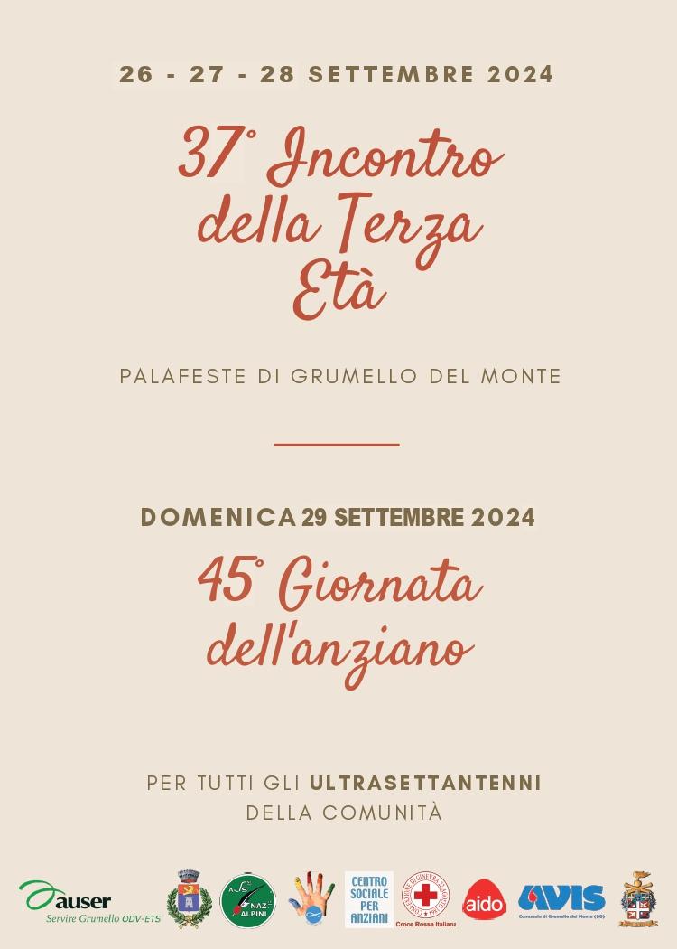 37° Incontro della Terza Età 26-27-28/9 e 45^ Giornata dell'Anziano domenica 29/9/24 c/o Palafeste
