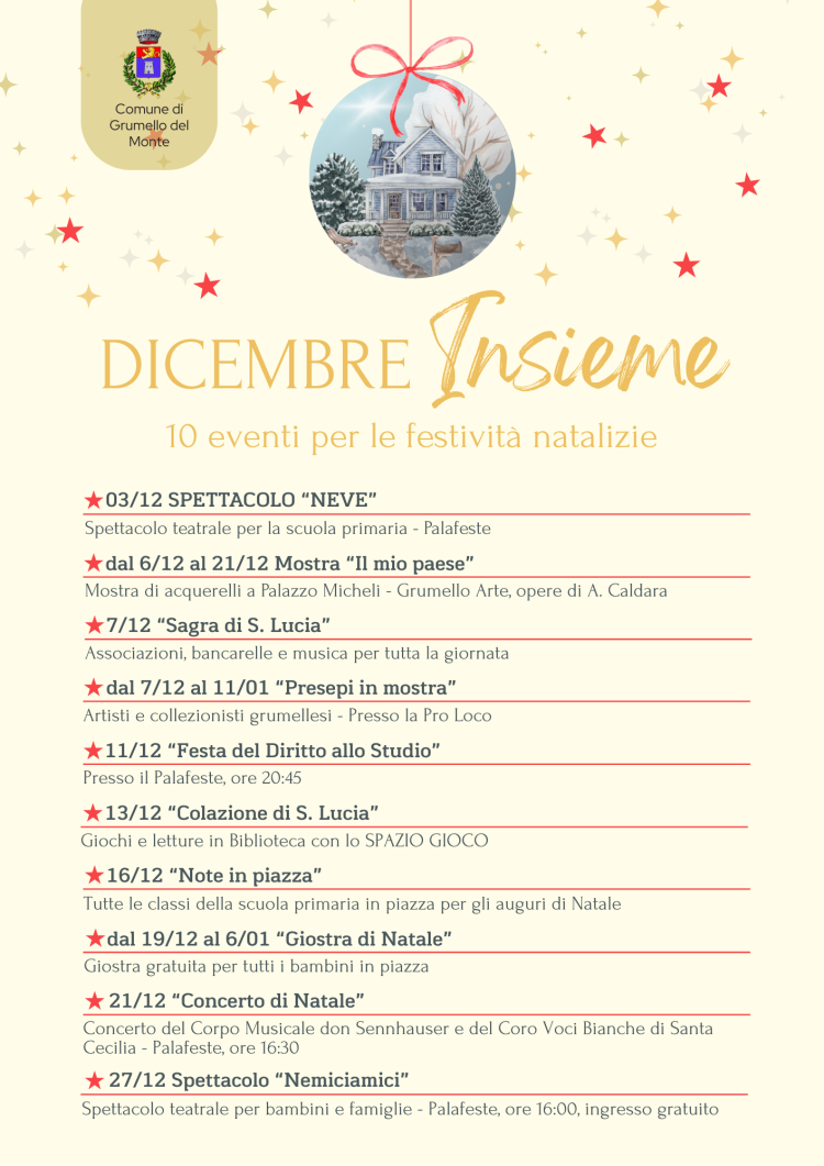Un ricco calendario di 10 eventi pensati per celebrare insieme alla comunità la magia delle festività natalizie.