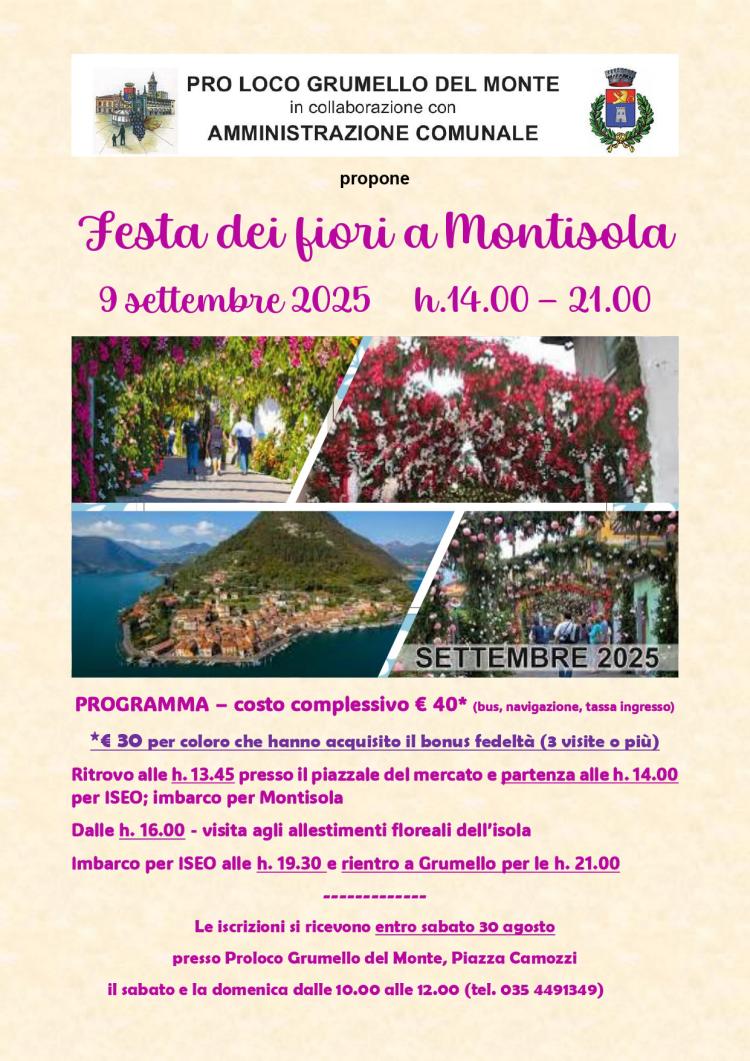 Festa dei fiori a Montisola 9 settembre 2025 h. 14:00-21:00