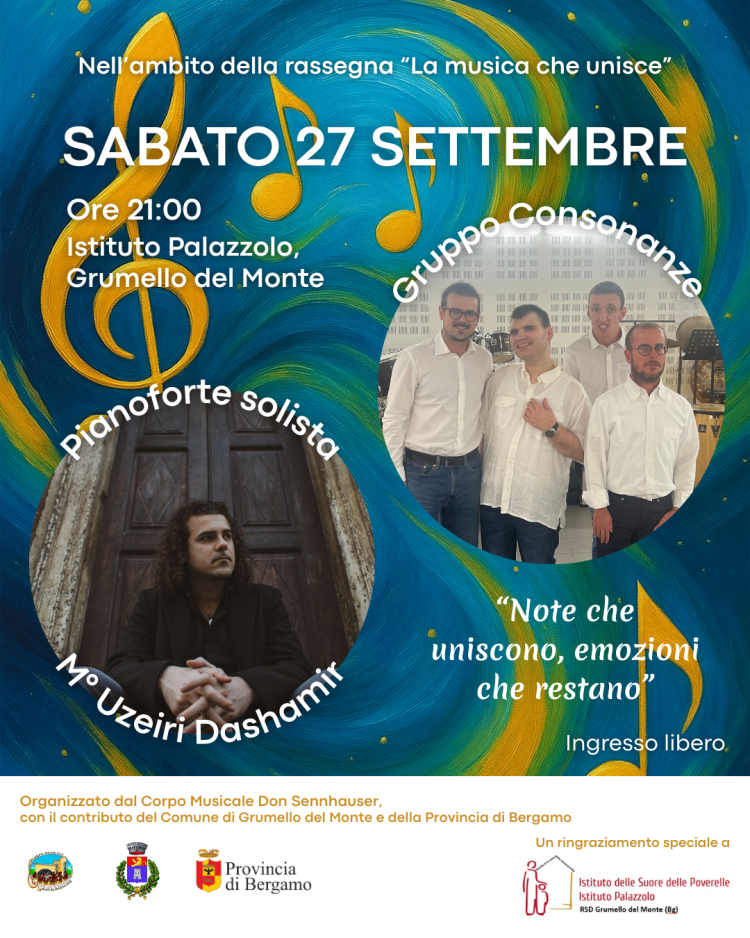 - Gruppo Consonanze, il gruppo dell'Accademia Musicale Don Sennhauser, formato per offrire anche a persone diversamente abili la gioia della musica e del suonare insieme; guidati dal M° Dashamir Uzeiri, i ragazzi proporranno un percorso musicale che celebra ritmo ed energia;