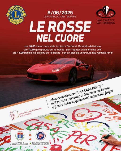 Il rombo del cuore torna a Grumello del Monte! Domenica 8 giugno 2025 non perdere "Le Rosse nel cuore", un evento solidale dedicato alla passione per le auto e alla solidarietà, organizzato dal Lions Club Val Calepio e Val Cavallina
