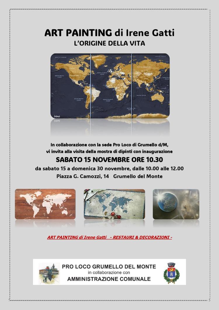 Pro Loco Grumello del Monte in collaborazione con l'Amministrazione Comunale invita la cittadinanza alla mostra di dipinti “L’origine della vita” di Irene Gatti (Art Painting).