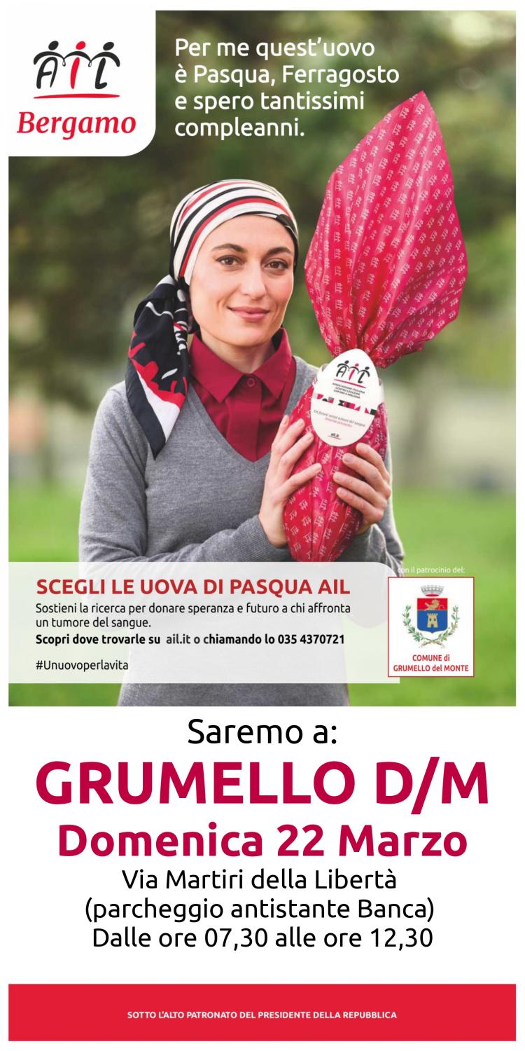 Anche quest'anno il Comune di Grumello del Monte rinnova il suo impegno al fianco di AIL (Associazione Italiana contro Leucemie, linfomi e mieloma) patrocinando l'iniziativa #Unuovoperlavita.